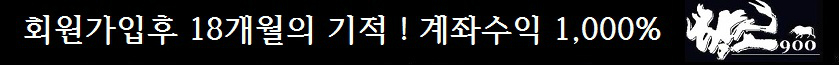 안녕하세요.초보자도 따라하면 !! 일년에 계좌수익 100% ~!! 를 진행하는 황소900입니다