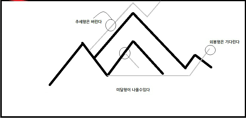 즉,매수당시에는 미래흐름이 삼산형으로 움직일지 쌍봉형으로 움직일지 알수없다는데 있다.