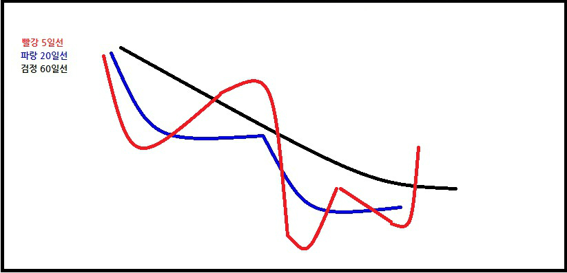 240일선의 하락각이 내려오면 60일선과 240일선의 확산후 수렴이후 재하락..의 경우인데 이경우는 들어가면 저점을 붕괴하고 다시 빠진다 이런말입니다.