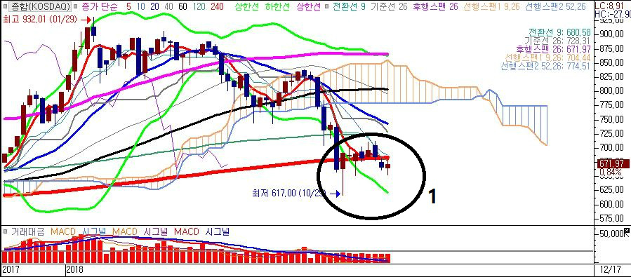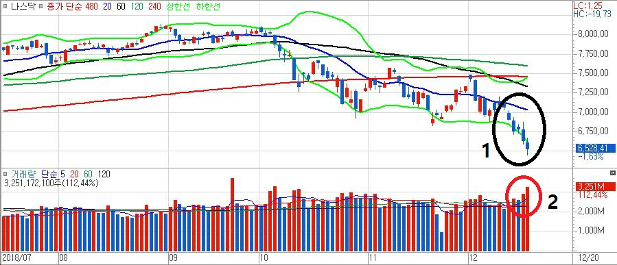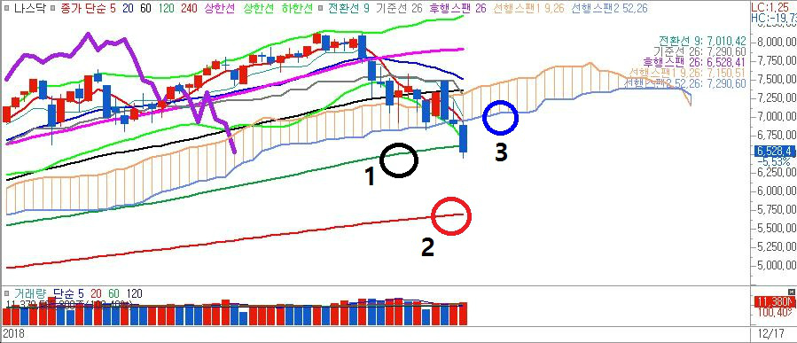 나스닥의 흐름을 보면 1번의 지지국면과 2번의 지지국면으로 나뉘어지고