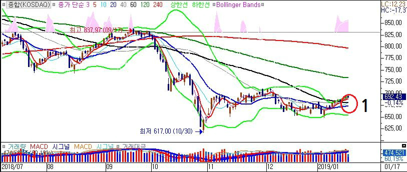 안녕하세요. 지난 대선에서 가입회원이 18개월만에 1,000%의 계좌수익을 달성한 황소900입니다 먼저 파동이론[쌍봉,삼산형]과 각각의 이동평균선을 결합하여 힘의 측정과 시장유행을 이용한 단기트레이딩 운용하는 선발매매자리와 단기매매에 실패했을시 승부를 볼 기법자리이냐 ? 아니냐를 따져 또한 이 기법을 이용하면 이동평균선의 수렴과 확산, 저항과 지지, 골든크로스와 데드크로스 등을 통해 황소900의 기법을 토대로 현재 시장의 위치와 향후 시장의 흐름이 어디로 갈지를 알아보자 먼저 나스닥을 살펴보면 1번국면을 보면 급락후 매수운용하기 쉽지않는 모습이다. 2번국면의 모습은 이제 매물대 진입하는 모습이다 그러나 일봉을 보면 조금 다른 시야를 가질수 있다.이평선의 하락각들이 변하고 있기 때문이다 코스닥 차트를 보면 좀더 명확하다 2번국면에서 이미 충분한 지지력 테스트가 이루어 지고 있는 모습이기 때문이다 코스닥 일봉을 보면 좀더 명확하다. 20선과 60선의 모습이 좀더 명확하게 움직이기 때문이다. 이는 반전을 의미한다
