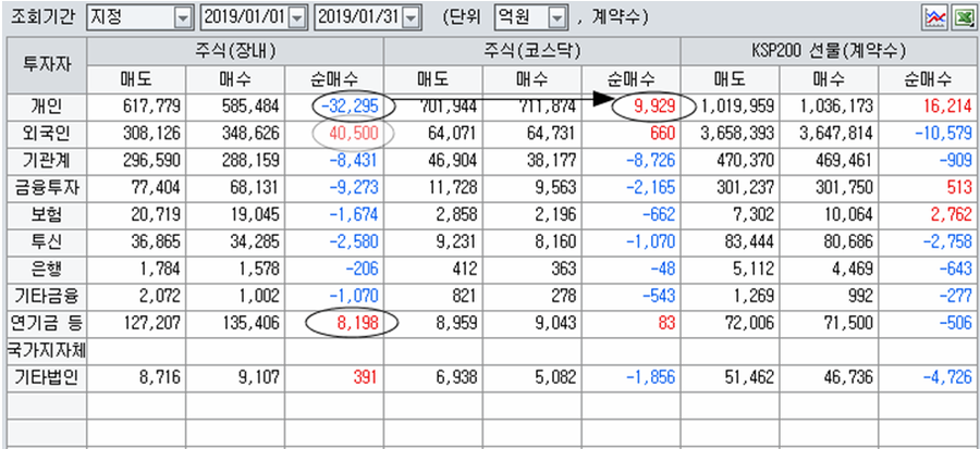 연기금을 제외한 기관은 줄곧 주식을 매도하거나 공매도를 늘리는 듯 하고, 일반은 거래소의 우량 대형주를 팔아서 움직임이 가벼운 코스닥 부실주를 사서 늘리는 잘못된 거래를 하는 듯 하다. 사실상 연기금을 제외하고는 거래소 우량주를 내다 팔고 있어서, 국가경제의 성장 결실인 자본의 해외 유출이 심각하다.