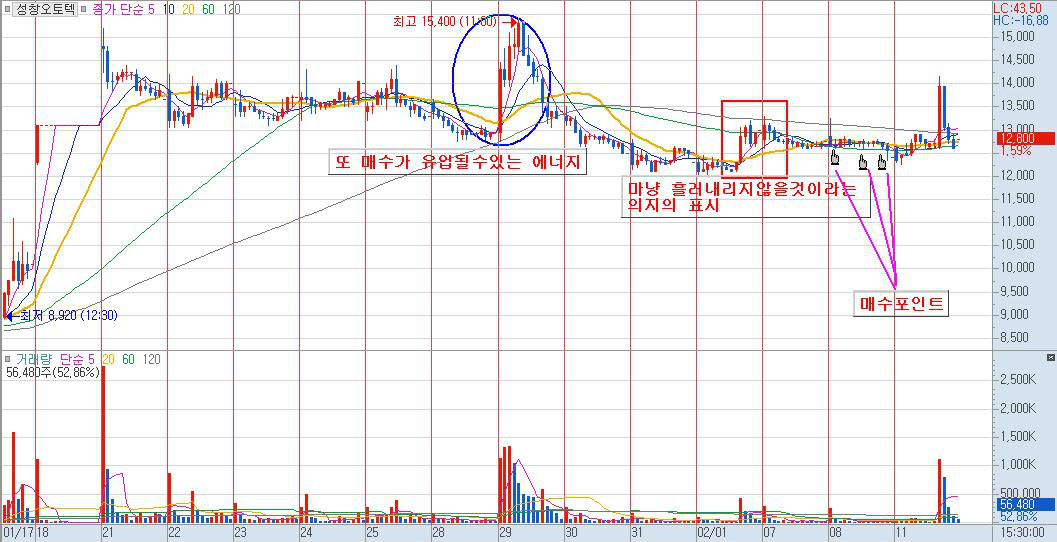 결국 매수세의 개입이나 주매수주체의 의지가 무엇인지를 파악해야 되는데 그럴때 주가의 반응을