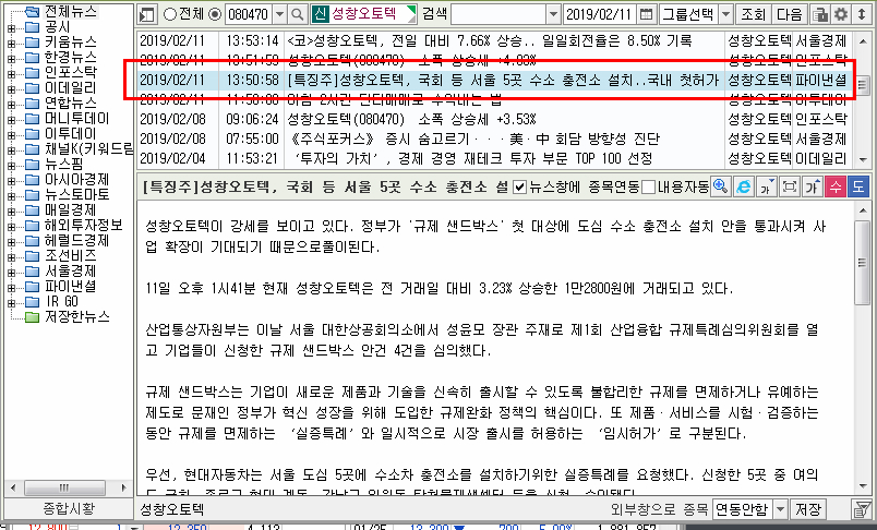 지금 기사띄우는 제목을 보면 서울에 수소충전소 설치한다는 건데 제목의 첫머리에 성창오토텍이라고 적어서