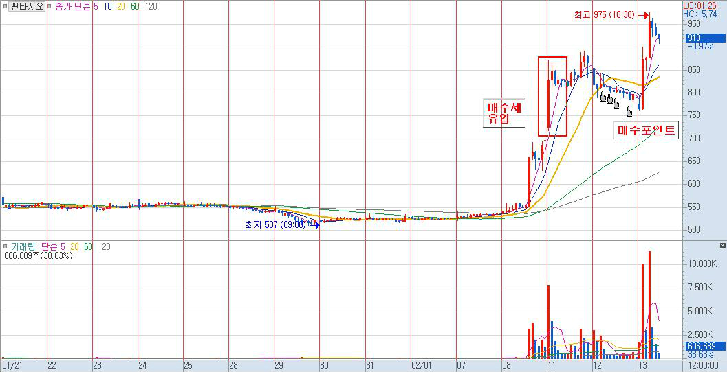 판타지오는 아스트로 아이돌 그룹관련해서 신규매수세가 바로 유입된 케이스입니다