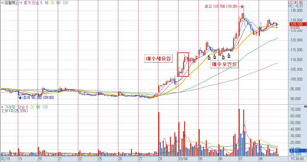 그래서 신규종목에 대한 매수유입시 적극적으로 대응포인트를 노리는것이