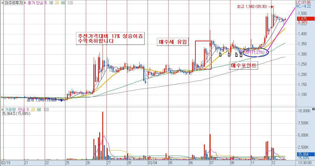 저번주 목요일 금요일 이틀간 무방 진행시 계속 매수대응한 아주IB투자 하고 하츠의 복기입니다.