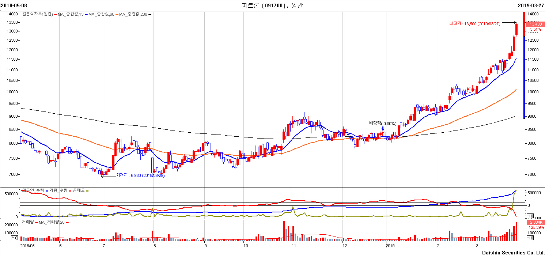 시세를 분출하고 윗꼬리를 길게 달고 대량거래를 수반했습니다.방송/인터넷 할거없이 미세먼지가 대세라고 합창을 부르는 이 시점에 단기상투가 아주 가까워졌음을 인지해야 합니다.