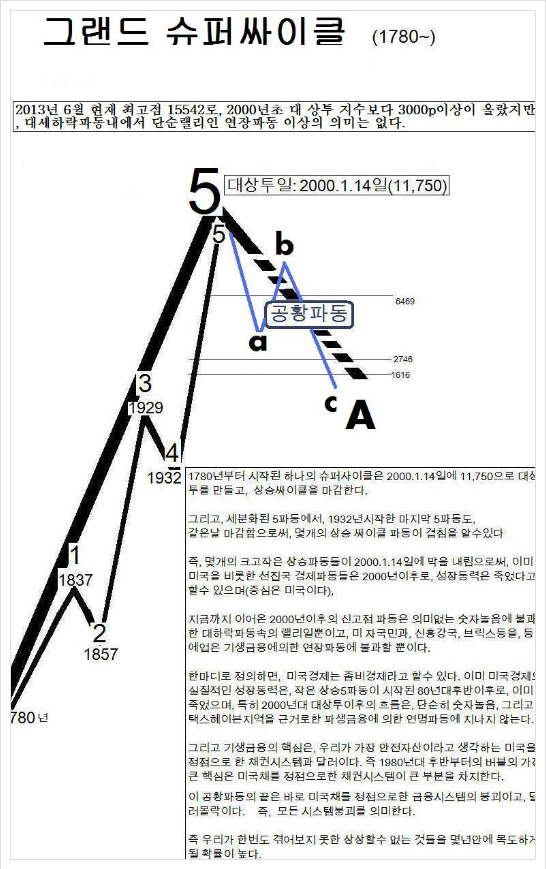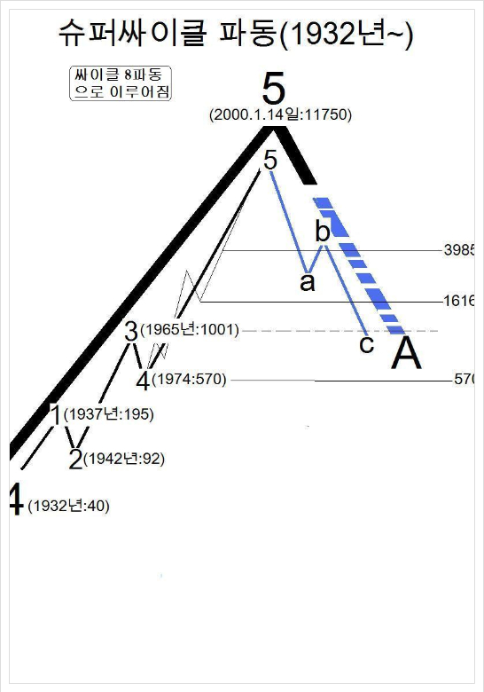 .슈퍼사이클 5파동으로 2000년 초에 상승파동을 종료한다.